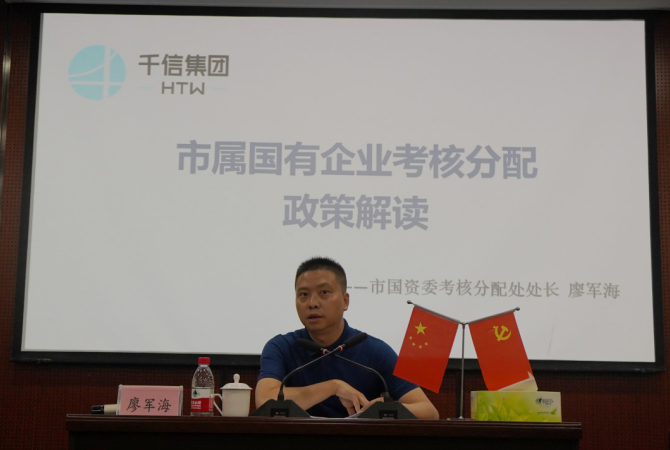 本次培训分两个部分进行。第一部分邀请了市国资委考核分配处处长廖军海给大家解读市属国有企业考核分配政策。廖处长引经据典结合企业实际深入浅出的给大家解说政策,要求千信集团在制定内部考核机制及其他制度的时候要有理有据,避免出现法律风险。在答疑环节,大家踊跃举手提问,廖处长一一做了详细解答。