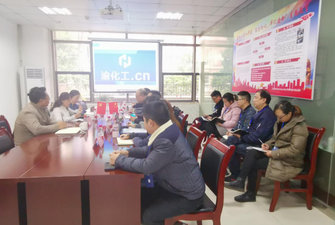 调研会议在渝化工会议室进行。渝化工市场部经理何建林汇报了市场推进情况,2019新增会员近200家,累计共注册会员近400家,截止汇报日平台交易额达92亿元,预计到年底将实现交易额100亿元以上;交易部副经理李迪对公司情况及网上交易全流程进行图文讲解汇报;行政人事部副经理王雪萍对公司2019年差旅费、招待费及办公用费使用情况进行汇报。渝化工总经理曹玉峰就申请“重庆化工品交易中心”的具体情况、化工产品交易三大版块共促发展构想等作具体汇报。