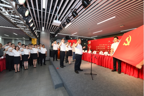 集团党委书记、董事长段彩均带领新党员宣誓,参会党员重温入党誓词。