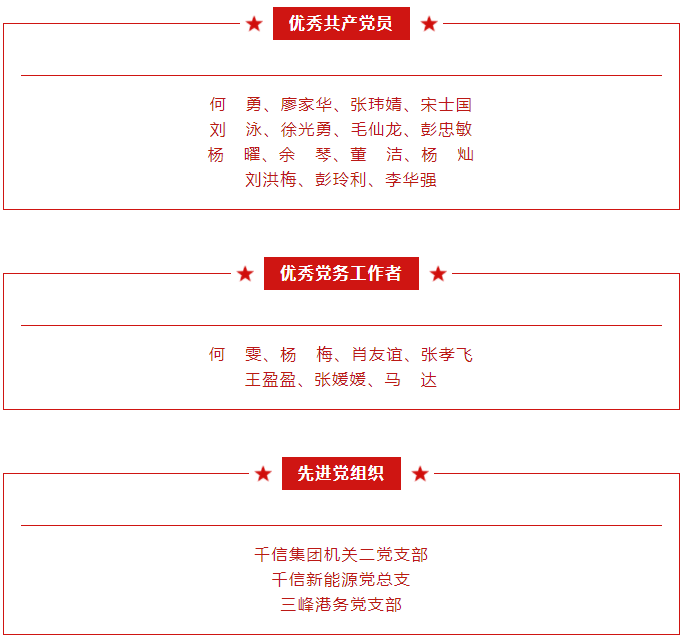 集团党委委员、监事会主席陈敬淑宣读了《中共重庆千信集团有限公司委员会重庆千信集团有限公司重庆千信集团有限公司工会委员会关于表彰2020-2021年度先进集体和先进个人的决定》,对2020-2021年度7个先进集团、16名先进生产(工作)者予以表彰。