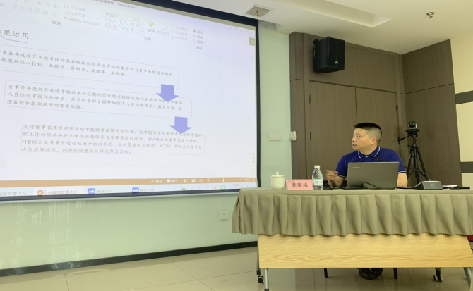 为全面推行完善企业负责人绩效年薪考核和工资总额管理,不断建立健全集团内控体系,确保过程执行到位。6月24日,千信集团邀请重庆设计集团党委委员、董事、副总经理廖军海作为主讲人,开展了“企业负责人绩效年薪考核和工资总额管理”专题培训。集团领导班子成员,集团本部相关职能部门,各子公司的领导班子成员及其相关职能部门人员近45人参加培训。培训由人才资源部部长彭洁主持。