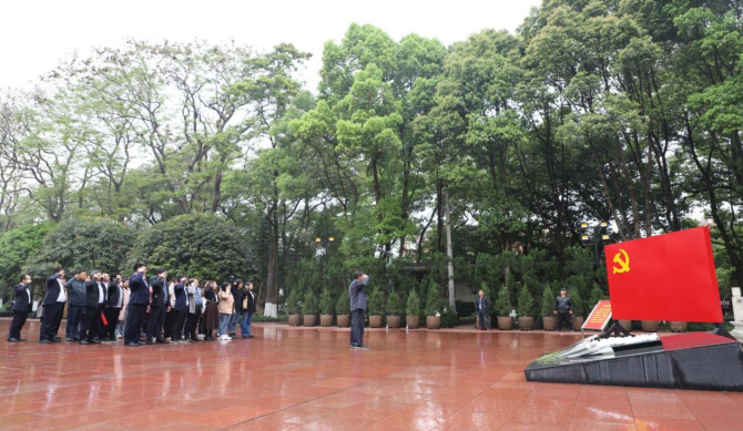 活动中,机关二支部书记覃孝见带领全体党员在蒙蒙细雨中,面向党旗、整齐排列、高起右手、紧握拳头,重温入党誓词,郑重许下永远对党忠诚,永不叛党的誓言。铿锵有力的誓词,响亮云霄的誓语,回荡在陈列馆广场,更加坚定了党员同志对党无限忠诚和为共产主义奋斗终身的决心。