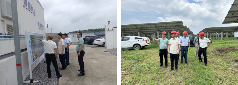 调研期间张涛对项目公司光伏区、运维舱、开关站、办公区及生活区等进行实地调研,对两个项目的安全生产运行、夏季防暑降温用品准备、设备运行状态、合肥光伏区土地农业种植利用、企业文化建设及职工生活等情况进行了详细了解。