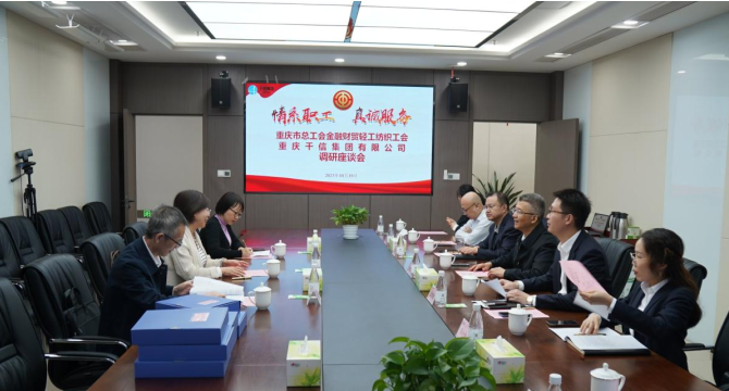 10月19日,市总工会金融财贸轻工纺织工会主席贺莉,副主席史仁勇、张丽娟一行到重庆千信集团调研交流。集团党委副书记、总经理金自力,集团工会主席、团委书记张约翰,以及在渝企业工会负责人参加调研。