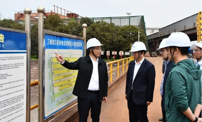 在三峰港务,王荆一行先后参观了港区中控室、保税仓、码头生产现场和裕宝矿业工厂,详细了解了三峰港务的发展历程、生产规模、靠泊能力、装卸工艺、“四位一体”战略规划和前港后园建设等情况。随后,考察团前往华大石化,在如皋市政府领导、如皋交通产业集团负责人的陪同下,考察了危化品罐装区、仓储罐区、油品码头,听取了关于港口规模、仓储及炼化资质等重点情况的介绍。