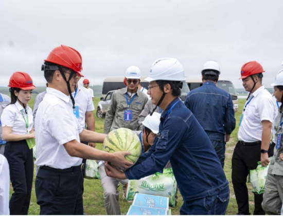 7月31日,重庆市总工会党组成员、副主席申雄带队,重庆市金融财贸轻纺工会副主席魏杨,重庆市交通建设工会调研员杨柯等一行来到赤峰金色能源有限公司,开展了“防暑保安康”清凉慰问活动。千信集团党委委员、常务副总经理陈宏,工会主席、团委书记张约翰,千信新能源董事长张涛,千信国际总经理徐光勇陪同参加。