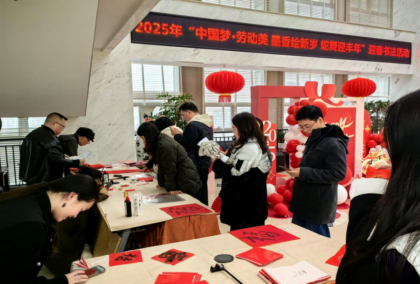 活动现场,处处洋溢着浓郁的文化气息。受邀而来的书法老师大展身手,笔锋游走如龙,将对新春的祝福和对未来的期许融入一笔一画。不一会儿,一幅幅精美的书法作品便跃然纸上。有饱含新年祝福的“福满蛇年”“瑞蛇迎春”,也有展现劳动精神、诠释中国梦内涵的各类励志语句。职工们围绕在书法家身边,全神贯注观摩创作过程,看到精彩之处,不时发出阵阵赞叹。