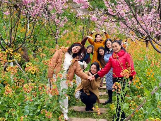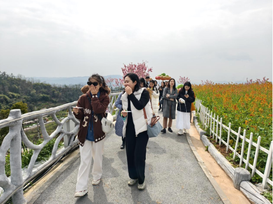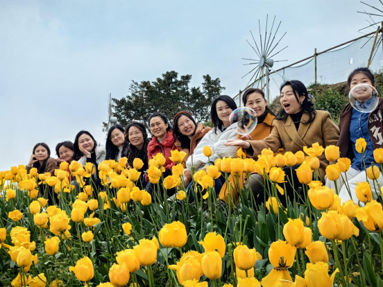 活动当天,天气正好,阳光明媚。参与活动的领导职工一同乘车来到位于大渡口区的金鳌山云上田园。刚下车,一幅繁花似锦的春日画卷就在眼前徐徐展开。阳光下,花朵竞相绽放,微风拂过,摇曳生姿,芬芳动人。女职工们宛如蝴蝶一般,轻盈穿梭在花丛之间,三两成群,与花朵合影留念,现场热闹非凡,欢笑声交织成一首美妙的春日乐章。