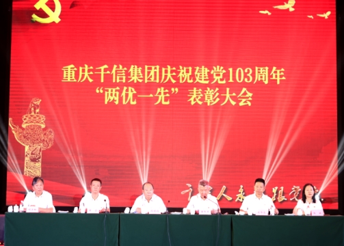 2024年7月1日上午,重庆千信集团庆祝中国共产党成立103周年“两优一先”表彰大会暨“千信人永远跟党走”文艺汇演隆重举行。集团领导班子成员、本部及二级企业党员、职工代表等近300人参加活动。