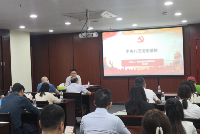 为认真落实习近平总书记重要讲话精神,5月25日,集团纪检监察部部长白沅林以“中央八项规定精神”为题,对千信新能源和千诚实业全体职工进行了专题培训。